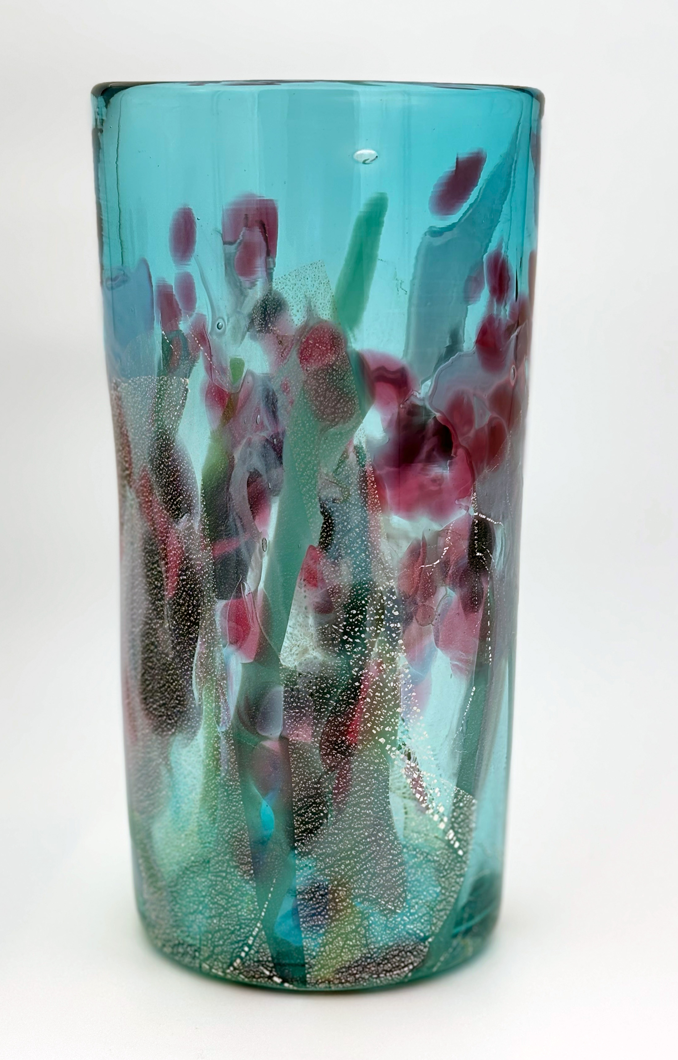 Teal Vase with Ruby Flowers